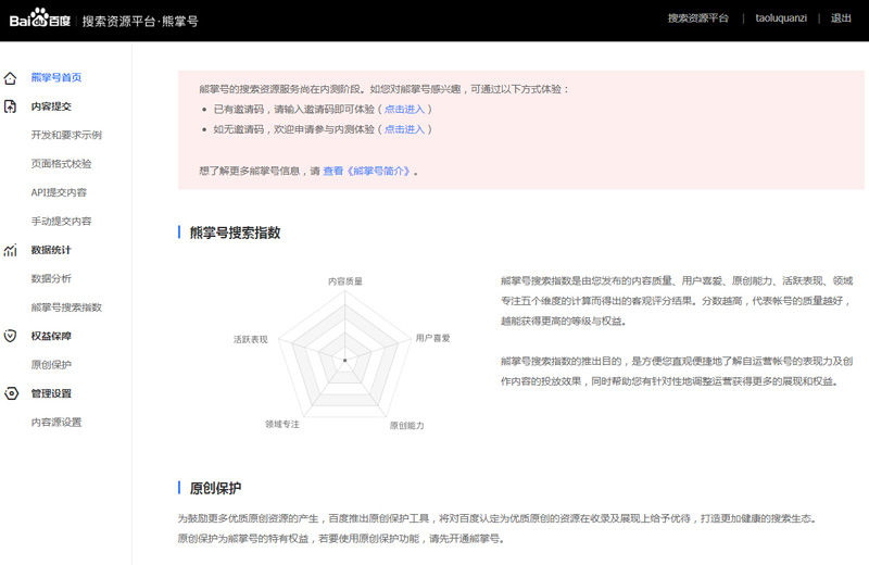 ②已開通熊掌號的賬戶,點擊進入后的顯示界面如下