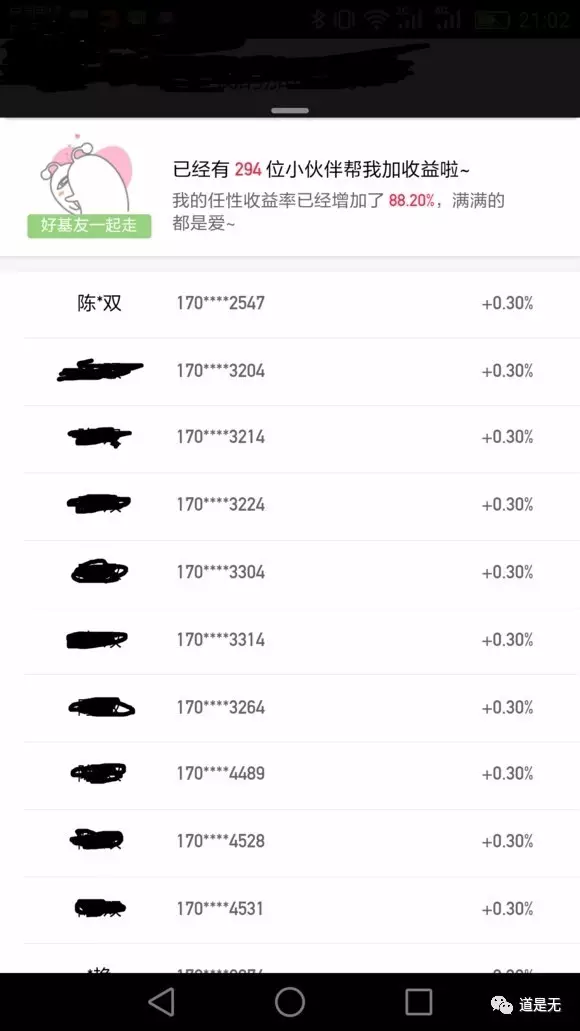 - 分享者A邀請到朋友B完成注冊,則該A的收益可增加0.1%,B可以再邀請C,一條鏈路上最多可加0.3%的收益率,也就是邀請3位好友來參加(當(dāng)時(shí)沒有考慮到傳銷相關(guān)的問題,后來有調(diào)整,參見上圖規(guī)則頁)
