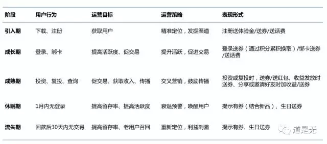 當(dāng)用戶處于不同時(shí)期時(shí),用戶價(jià)值會(huì)產(chǎn)生相應(yīng)的變化,因此,也需要針對不同時(shí)期來設(shè)計(jì)對應(yīng)的運(yùn)營目標(biāo)和策略。