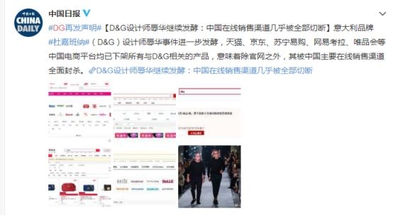 反觀D&G的做法,廣告視頻被中國網友抨擊后,只是在中國的社交媒體上消失了,卻依然堂而皇之地保留在海外知名社交平臺Instagram和Facebook上。更奇葩的是,該品牌的一位聯合創(chuàng)始人面對中國網友的質疑直接發(fā)表了辱華言論,另一位創(chuàng)始人則表示“時裝周取消很不幸”,也沒有代表品牌向中國和中國消費者道歉。面對兩位“豬隊友”一般的創(chuàng)始人,D&G的公關團隊也表現出了與奢侈品牌不相符合的公關水平,稱那位辱華的創(chuàng)始人社交賬號被盜,才會在網絡上大放厥詞。接二連三的愚蠢又傲慢的操作,D&G直接把中國市場完完全全得罪了,如今大秀被取消,8家主流電商將D&G的產品全部下架。
