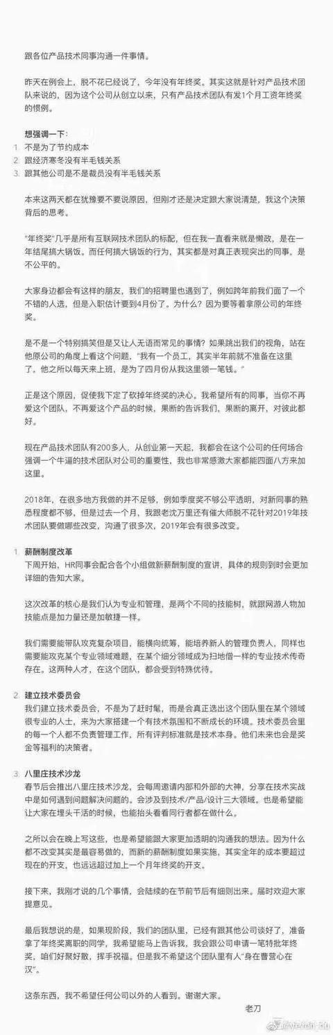 1、原有技術(shù)團隊1個月工資的年終獎不發(fā)了;