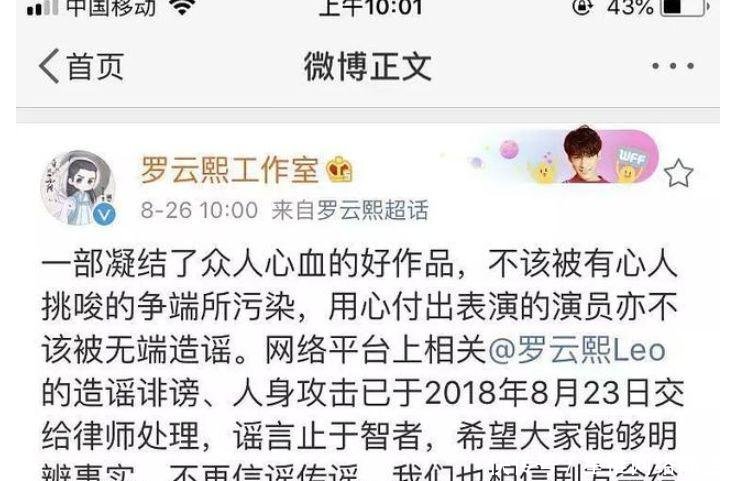 不過羅云熙工作室馬上發(fā)表了推文,表示自己將會追究一切法律責任,謠言止于智者,希望大家不要被相關媒體所蒙蔽,因為劇情發(fā)展到現(xiàn)在明顯感覺到,接下來的全面劇情都是,鳳凰變?yōu)槟ё鸬恼麄€故事,要很多個小伙伴期待后續(xù)的發(fā)展,所以面對一時的粉絲們的激憤,想想也真是苦了羅云熙以及編劇團隊了。