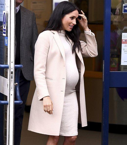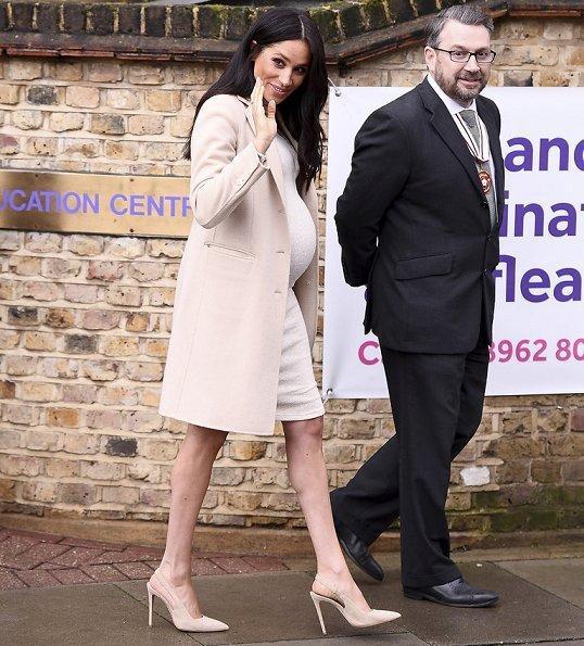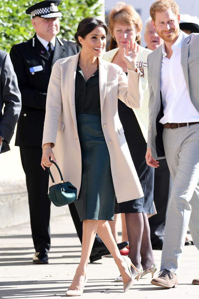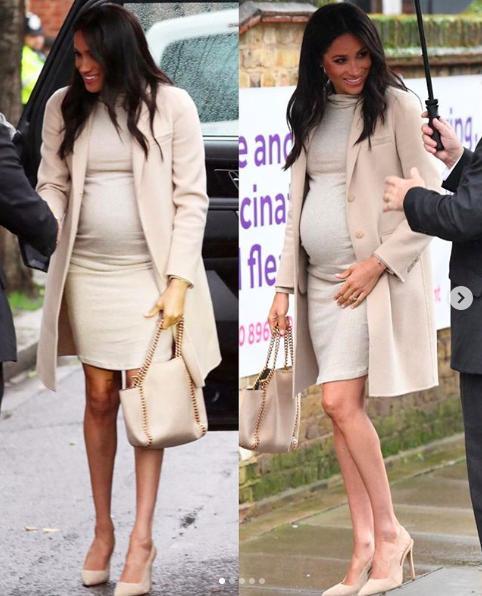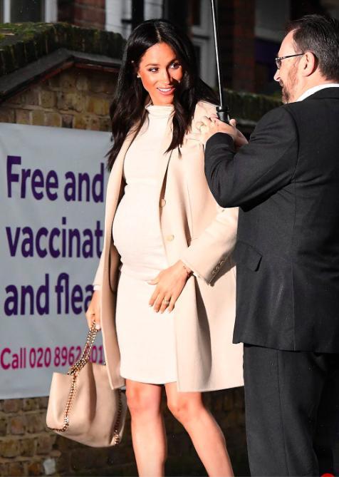 當天倫敦溫度接近零度,還要漂著濕雨,而孕婦梅根在室外還待了蠻長時間,為了保證穿著看起來不累贅,她連絲襪也沒穿,光著腳配搭的Paul Andrew高跟鞋還是夏天款的露踭涼鞋,勇氣可嘉。