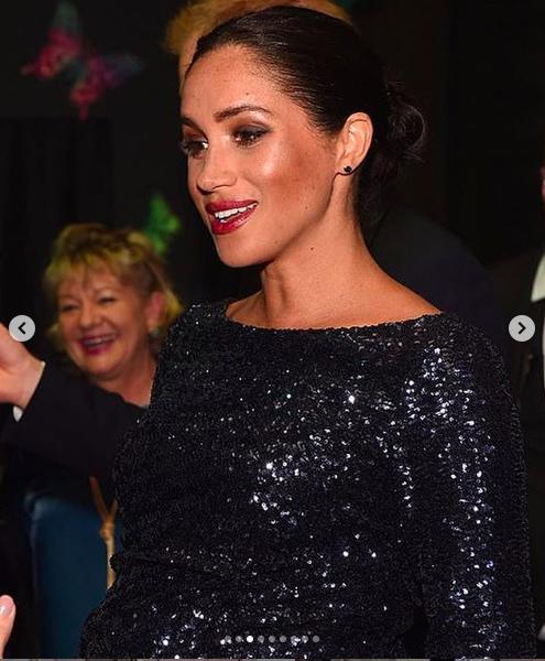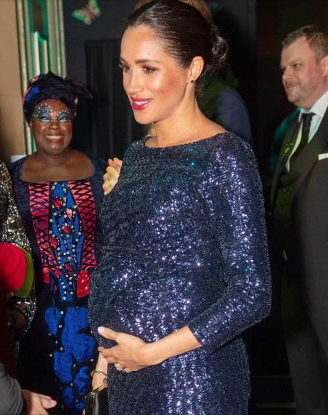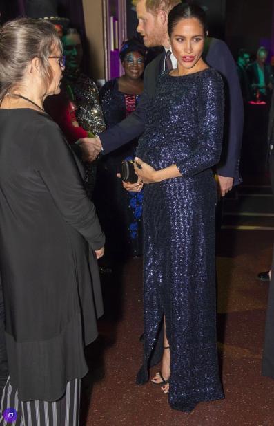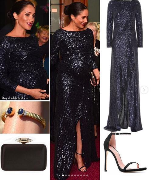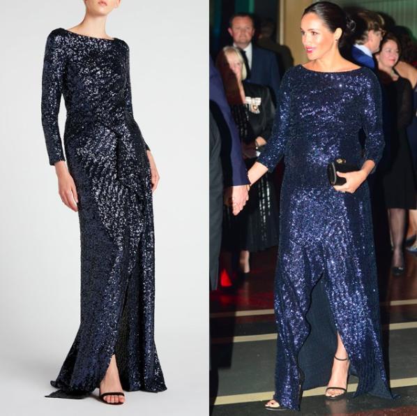 看官們可能對這件價值3495英鎊(約3.5萬人民幣)的Roland Mouret設計的海軍亮片禮服感覺很眼熟。因為它看起來與瑞典的維多利亞公主在2011年懷孕期間穿著的諾貝爾獎頒獎典禮晚禮服非常相似。只不過梅根的禮服有前開衩細節(jié),看來這種設計完全為孕婦準備呀。