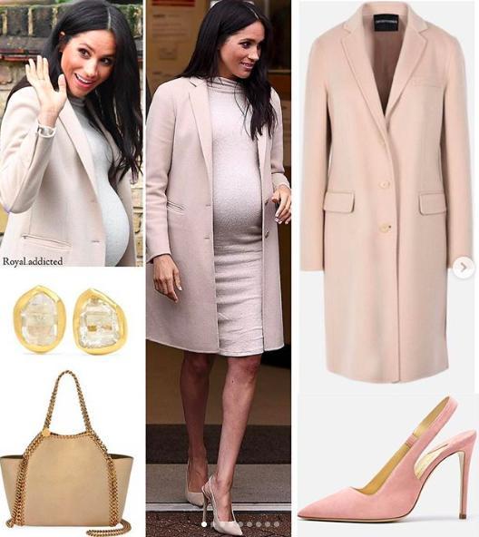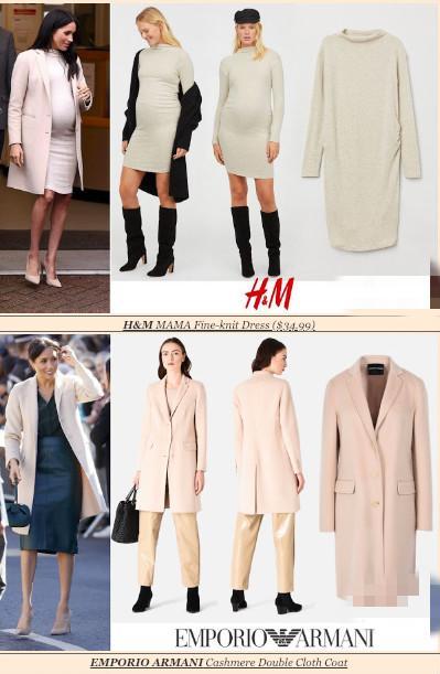 梅根著裝上是為一直以來群眾認為她花太多錢置裝的一個反擊,居然讓人大跌眼鏡地穿起來來自H&M產(chǎn)婦系列的24.99英鎊高領連衣裙(大概250塊錢人民幣),而奶油色的外套來自阿瑪尼,Stella McCartney的迷你雙面手提包(1,145美元),耳環(huán)來自Pippa Small。