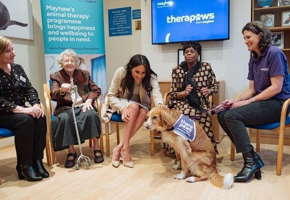 而在同一天的早些時候,梅根風格完全不同,她到位于倫敦西北部的動物福利慈善機構Mayhew訪問,上周女王宣布看中梅根的工作能力,一下就派了四個工作給她,包括擔任國家大劇院、大英國協(xié)大學協(xié)會、失業(yè)婦女機構smart work\動物權益機構mayhew的贊助人。