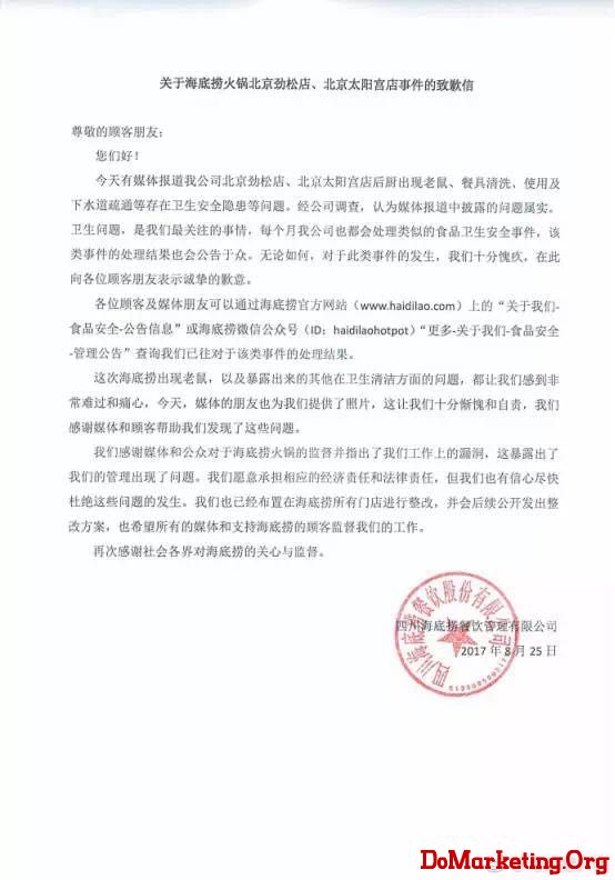 看到這樣的說明是否有些眼熟?沒錯(cuò),就在幾天前海底撈也發(fā)出了相似的致歉信和通報(bào)。
