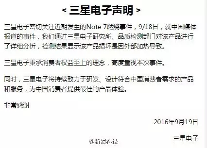 三星最初的聲明,極力淡化事件影響,沒有足夠的重視爆炸這一問題。
