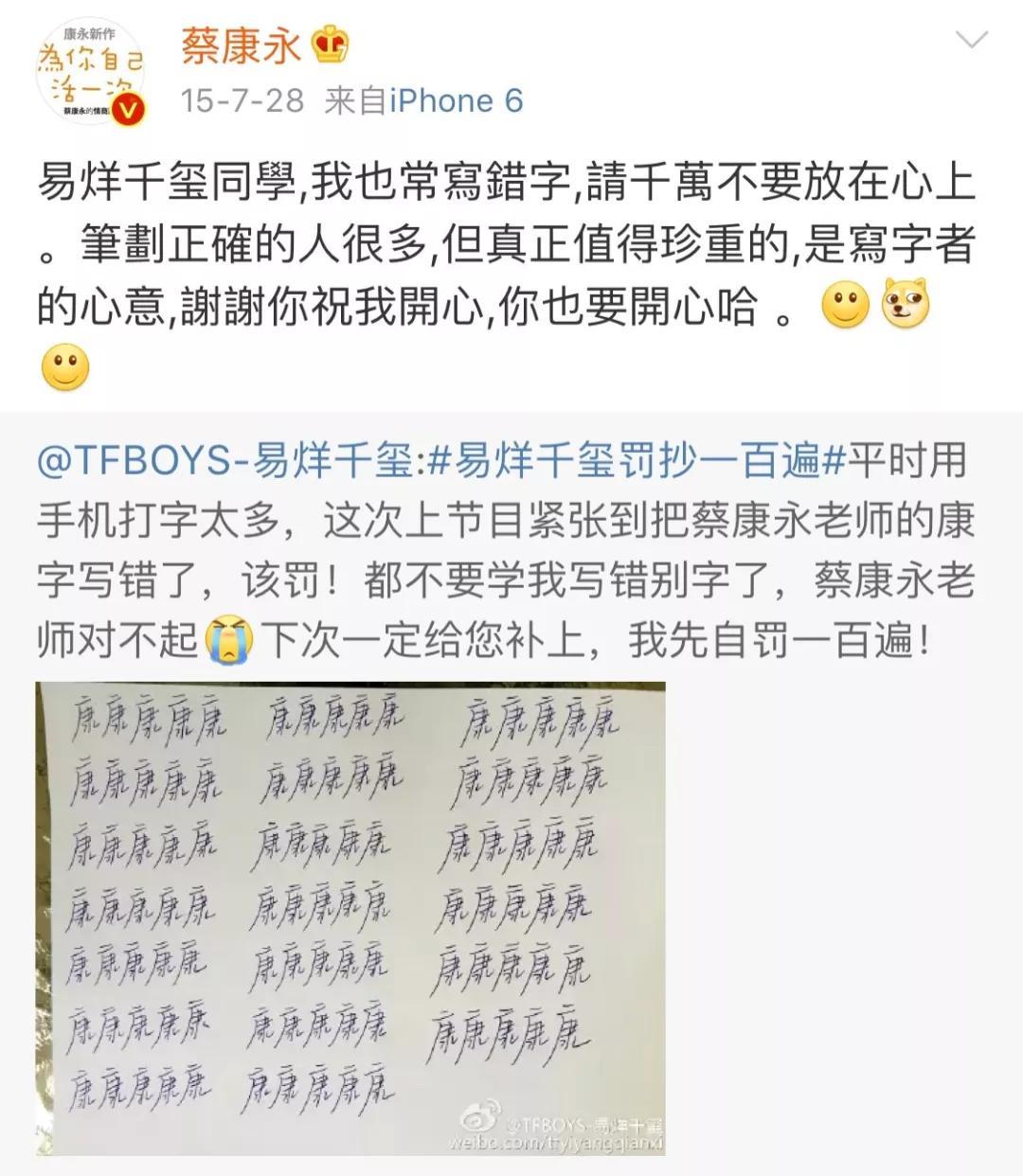 易烊千璽主動(dòng)發(fā)微博承認(rèn)錯(cuò)誤,并自罰抄寫“康”字一百遍,,附上罰抄圖片。網(wǎng)友紛紛表態(tài)覺得易烊千璽很有誠意知錯(cuò)就改,這一危機(jī)公關(guān)迅速改變了輿論方向,所有輿論一水變成了易烊千璽書法好看,易烊千璽知錯(cuò)就改,Tfboys三只未來可期。