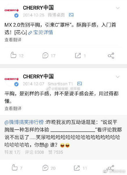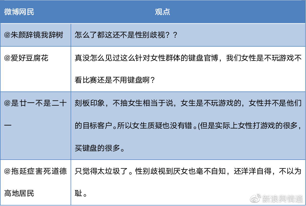 @CHERRY中國發(fā)起的鍵盤抽獎(jiǎng)僅限“男性”,引發(fā)輿論不滿,網(wǎng)友認(rèn)為這種“只有男生玩游戲”的暗示,顯然是一種性別刻板印象。同時(shí),一些網(wǎng)友翻出公司以往營銷微博,認(rèn)為其“物化女性、歧視女性”的風(fēng)格更是一以貫之。