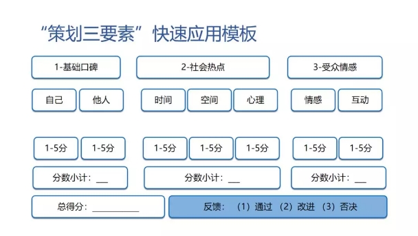 內(nèi)容生產(chǎn)出來后,可以用評分模板來給內(nèi)容評分,給基礎(chǔ)口碑、社會熱點和公眾體驗分別打分,然后算總分。