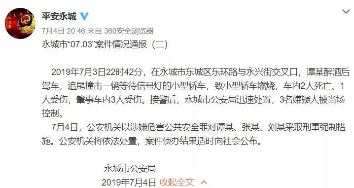 然而“官方”到底公布了哪些情況呢?負(fù)責(zé)處理此次案件的永城公安局此前在@平安永城 發(fā)布過兩次情況通報,均沒有涉及酒駕女車主的精神情況。
