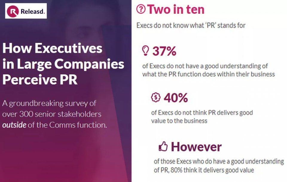 近日, Releasd 發(fā)布的一項針對超過300名非公關傳播行業(yè)的公司高管的調查顯示,20%的人不知道”Public Relations”代表的是什么,40%的高管不認為公關為他們的業(yè)務帶來了良好的價值。