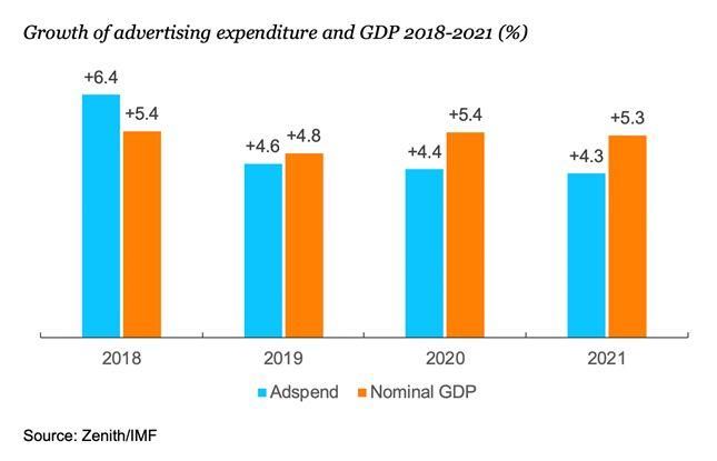 不過,隨著市場日趨成熟,數(shù)字廣告的總體增長放慢。2018年,數(shù)字廣告增長了17%,實力媒體預測這一數(shù)字將在2019年降至12%,并于2021年進一步下降到9%。