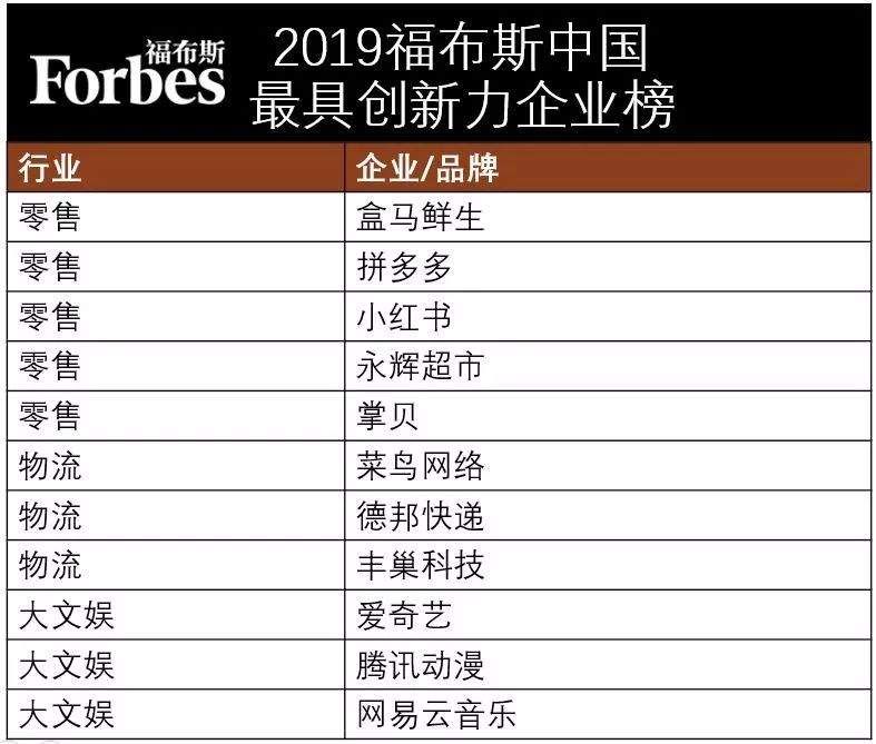 2019福布斯中國最具創(chuàng)新力企業(yè)榜發(fā)布