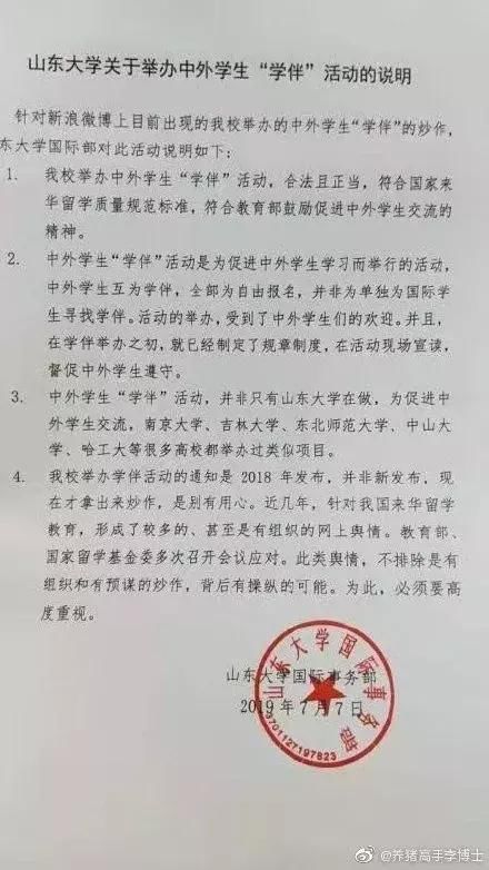 在我看來,學(xué)伴危機(jī)本質(zhì)上是大家對于留學(xué)生的超國民待遇有意見,山大不過是作為一個(gè)出口,這時(shí)候,山大既然有問題,就應(yīng)該誠懇一些,而不是像7日的聲明中那樣四處甩鍋。