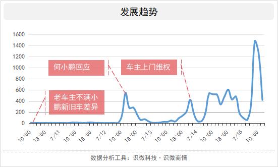 但該補償方案遠不及老車主們心理預期,結(jié)果就導致了13日一群車主跑到小鵬汽車總部拉橫幅維權,也因此此后兩天輿情保持了較高熱度。15日,各大媒體報道小鵬汽車老用戶集體維權事件,小鵬汽車將如何應對接下來的局面,才成為各界關注的焦點。