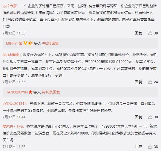 從@XP-何小鵬 公開信下的評論可以看到,在2020新款發(fā)布前,有車主被銷售以6月26日新能源補貼退坡為由催促下單的情況,卻沒有告知消費者小鵬會有換代的車型推出。訂車沒幾天后就出了新款,而新款的續(xù)航、剎車、助力等功能都進行了升級,這些事先不知情的車主由此質(zhì)疑小鵬汽車欺騙消費者,“鵬友”秒變“鵬黑”。