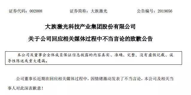 直至8月1日晚間,深交所發(fā)布公告稱,已第一時間督促大族激光發(fā)布致歉公告,并對高云峰不當行為予以批評,提醒公司實際控制人、董監(jiān)高應(yīng)當虛心接受媒體監(jiān)督。