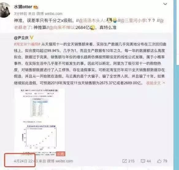 雙十一刷屏之后,這應該是淘寶公關介入的第二場危機公關了,第一場就是上午瘋傳的那個神預測,而這條微博也不見了。