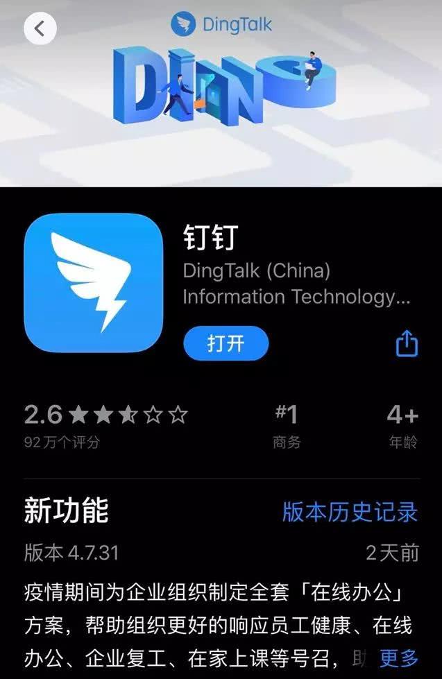原來,由于不滿釘釘可以把課堂搬回家里,再加上學(xué)生們不知道從哪里聽說的消息——一個APP的評分低于1就會被強制下架,大量中小學(xué)生因此組團在各大應(yīng)用市場上給釘釘刷單“一星好評”,希望讓釘釘下架。于是乎,一夜之間,孩子們將這款在蘋果應(yīng)用商店里下載排行第一的APP,評分從4.9分拉到了可憐的1.4分。