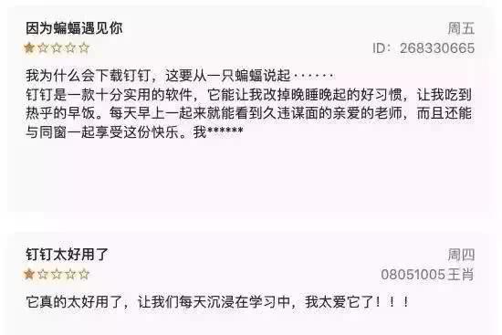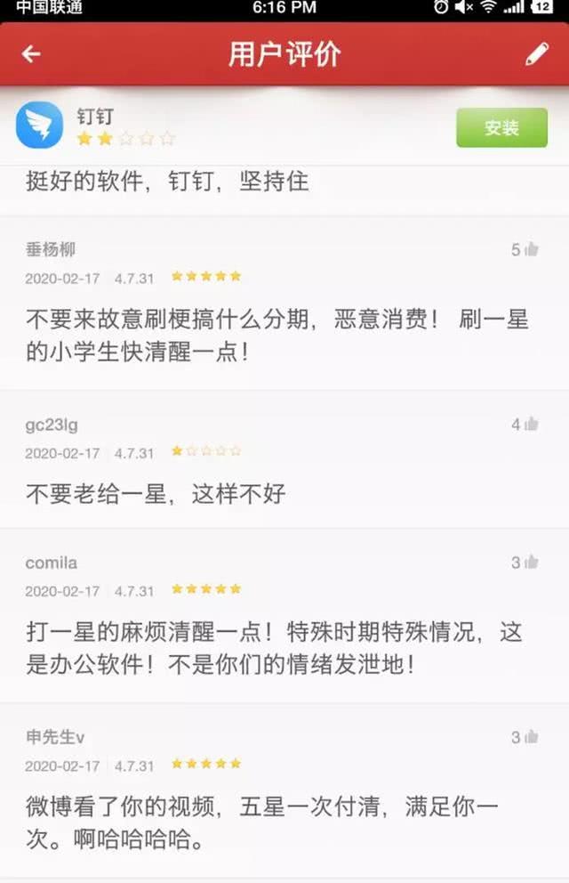 果然,又有大批中小學(xué)生響應(yīng)“號召”,紛紛趕去應(yīng)用市場,給釘釘連續(xù)5天只打一顆星。