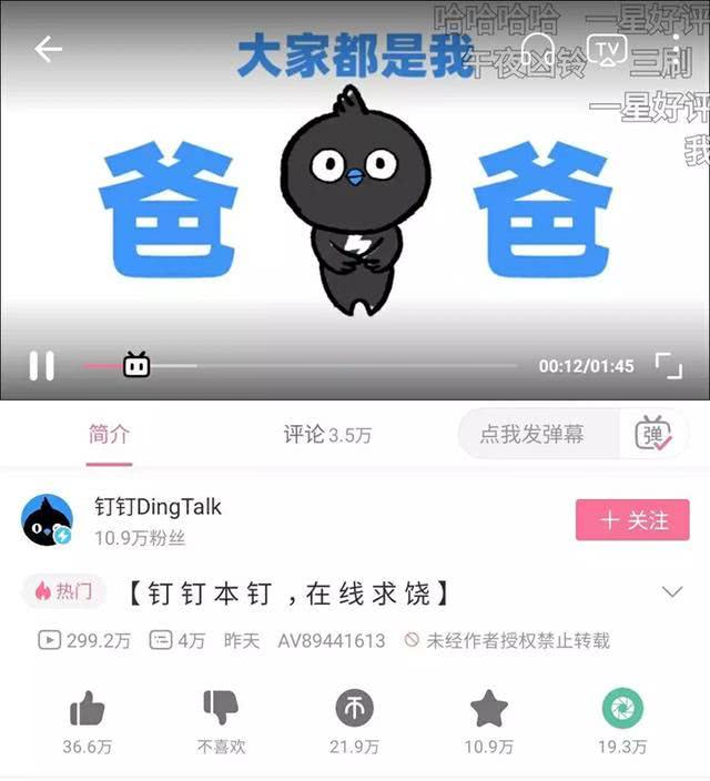 2月16日晚,釘釘本釘化身B站Up主,傾情奉上最新MV《釘釘本釘,在線求饒》。歌詞甚是搞笑, “我還是個五歲的孩子,卻加班到脫發(fā)” “我知道老師還得洗頭,給你們添麻煩了!我知道各位少俠假期不想那么充實,難為你們了” “少俠們饒命吧,大家都是我爸爸”……