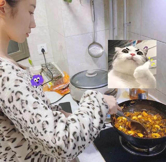 疫情期間明星曬美食成為熱潮。孟美岐做的是酸菜魚,看起來也很美味,熱氣騰騰。下廚的樣子也很帥氣。