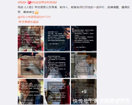 在微博上看到芒果為其背書,這條微博中寫道“肖戰(zhàn)《人物》專訪語(yǔ)錄以及導(dǎo)演、制作人、前輩老師們對(duì)他的一些評(píng)價(jià),自律清醒、懂得反思、善良紳士”。吹捧之詞溢于言表了,但實(shí)際上都是些陳詞濫調(diào),給肖戰(zhàn)樹立人品好、努力的人設(shè)。實(shí)際上人品好、努力在娛樂圈是最不值錢的人設(shè),因?yàn)槭莻€(gè)流量明星都這么標(biāo)榜自己的。
