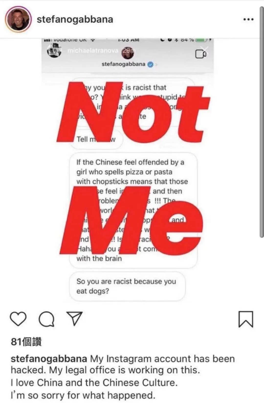 巴黎世家不是在中國市場栽跟頭的唯一奢侈品品牌。 同是2018年,奢侈品品牌杜嘉班納發(fā)布廣告影片,影片中一名黃皮膚女子一只手拿一根筷子,模仿使用刀叉來吃披薩,引發(fā)中國網(wǎng)友揣測,認(rèn)為該部廣告影片涉嫌****。隨后在回復(fù)中國網(wǎng)友質(zhì)疑時(shí),杜嘉班納創(chuàng)始人直接辱罵中國。 而杜嘉班納創(chuàng)始人的道歉為,“被盜號(hào)了”。