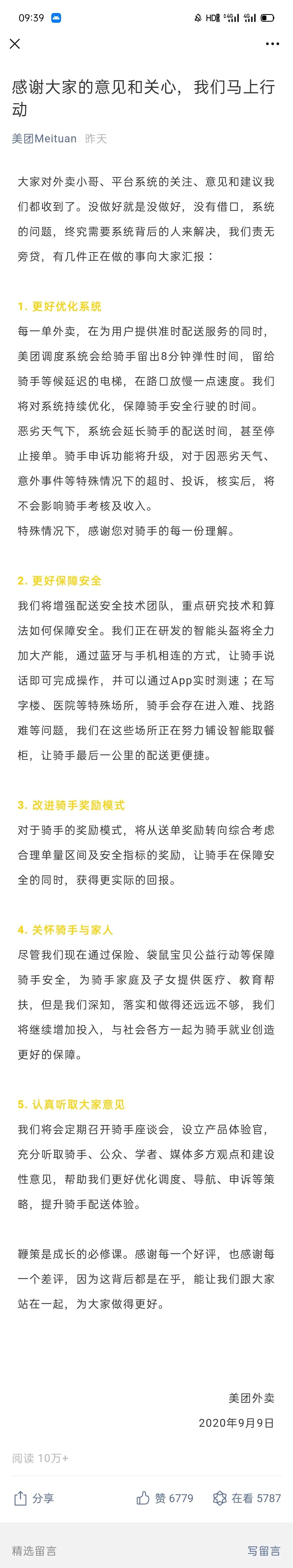 從這個視角我們再去看美團(tuán)的聲明,優(yōu)化系統(tǒng)+保障安全+改進(jìn)騎手獎勵模式+關(guān)懷騎手與家人+定期召開騎手座談會,這些問題都來自于那篇文章揭示的問題。