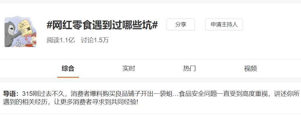 #良品鋪子雞肉腸#沖上微博熱搜榜,很快,相關(guān)話題#網(wǎng)紅零食遇到過哪些坑#,也成為微博熱搜話題。