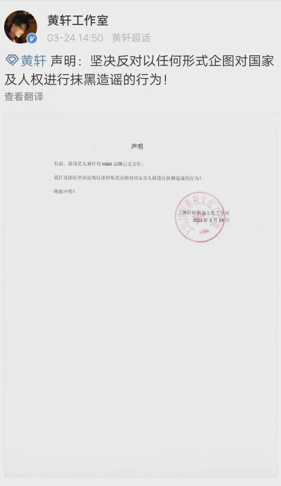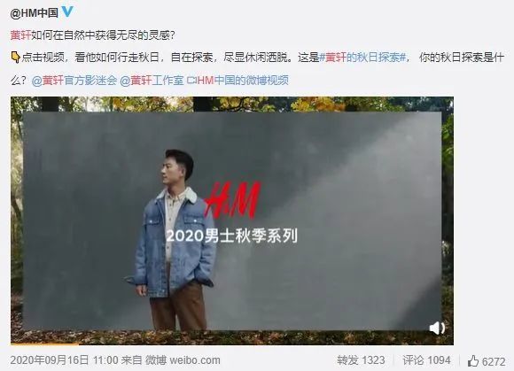 明星@黃軒 隨后也迅速與H&M撇清關(guān)系,他在去年有過一次合作: