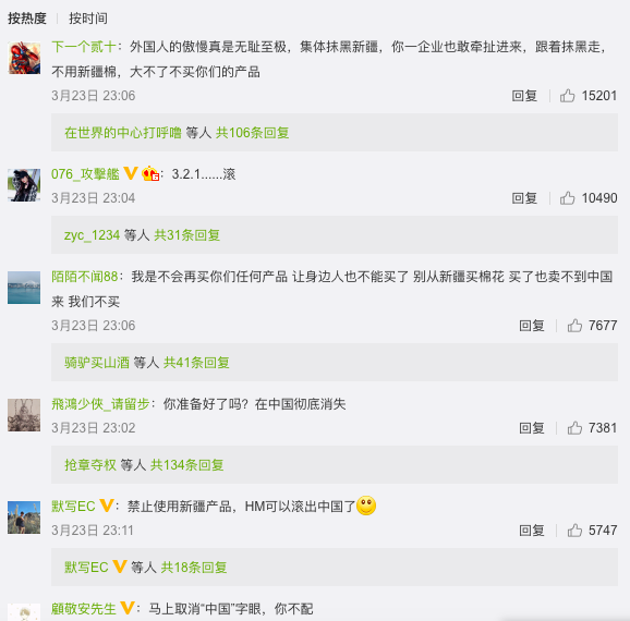 此事被國內(nèi)網(wǎng)友扒出后,大家紛紛在@H&M中國 的微博下面留言。
