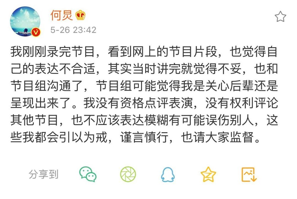 何炅也有過一次成功的危機公關。某次他在綜藝節(jié)目上為歐陽娜娜的演技“辯護”,大概意思就是說是節(jié)目組的鍋,而不是歐陽娜娜的問題。但是網(wǎng)友們對歐陽娜娜的演技大多持不認可的態(tài)度,所以都會認為何炅是在洗白。何炅在節(jié)目播出當天晚上就立馬道歉,防止事態(tài)的擴大,并且就網(wǎng)友們爭議的幾個問題進行了正面的回應,由此完成了一次成功的危機公關。