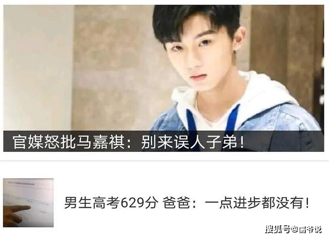 然而諷刺的是,官媒刊文怒批馬嘉祺也就罷了,就連推送該篇評(píng)論文章的媒體平臺(tái),都不忘「添油加醋」,幫襯官媒對(duì)馬嘉祺進(jìn)行二次打擊,在他后面又加了一條關(guān)于高考的新聞。而這條新聞標(biāo)題赫然醒目:「男生高考629分,爸爸:一點(diǎn)進(jìn)步都沒(méi)有!」