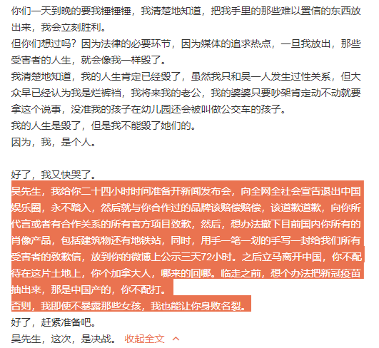 她還給吳亦凡發(fā)了“最后的決戰(zhàn)”書。