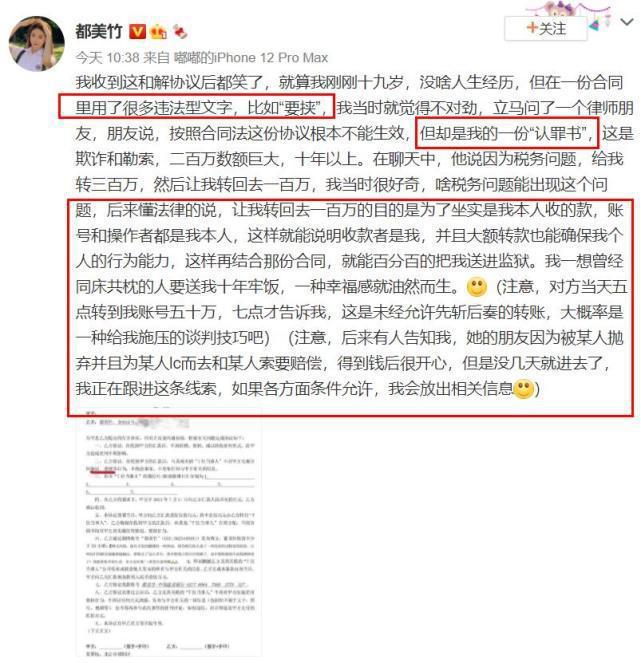 可是都美竹覺得不對勁,去咨詢了專業(yè)律師,發(fā)現(xiàn)她如果真這樣做了,一個敲詐勒索的罪名就可以吃十年起步的牢飯。