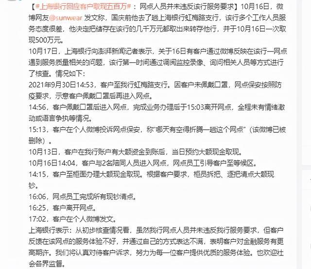 結(jié)合sunwear網(wǎng)友的微博,再看上海銀行這封回應(yīng)的其他內(nèi)容。在該網(wǎng)友的微博中,能夠清楚的講述了此次“銀行取錢事件”。而上海銀行呢?在回應(yīng)中以春秋筆法,將一些內(nèi)容含糊地講述了出來??梢哉f,這是上海銀行在將這次危機事件,轉(zhuǎn)移向自己有利的地方。一般來說吧,這沒啥錯!但是,大眾想要了解的是事實的真相。你這樣回應(yīng)就有逃避責(zé)任之嫌,自然網(wǎng)友們就不會買賬。