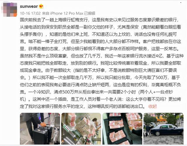 10月16日,微博名為“sunwear”的網(wǎng)友發(fā)文炮轟上海銀行,稱由于該行服務(wù)態(tài)度不好,他準(zhǔn)備分批將存在該行的幾千萬元全部取現(xiàn)轉(zhuǎn)移。此事一出,便引發(fā)了網(wǎng)友們的廣泛熱議。而在該網(wǎng)友發(fā)文之后,上海銀行也對此事做出了回應(yīng)??戳松虾cy行的回應(yīng),筆者想問一句:上海銀行能這樣做危機公關(guān)嗎?