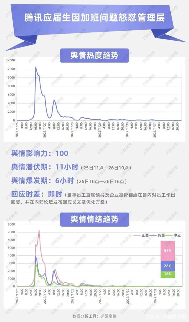 騰訊此次公關回應迅速、態(tài)度誠懇,最終的結(jié)果也達到了預期:直接針對騰訊的負面輿論較少,更多的輿論傾向于“佩服勇士”以及對整個互聯(lián)網(wǎng)行業(yè)工作制的反思。