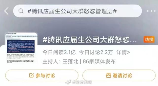 2022年1月25日,騰訊一名應屆生員工因“趕版本”導致的高強度加班問題,在部門內(nèi)部大群怒懟管理層。隨后,騰訊負責人回應將認真反思,盡快整改。