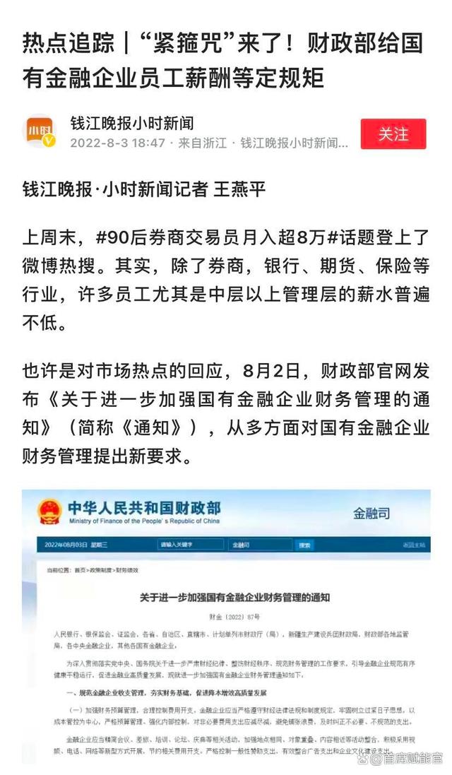 事件的影響很快就波及到了整個行業(yè),薪酬監(jiān)管“限薪令”隨之而來。8月2日,監(jiān)管部門發(fā)布通知,要求金融企業(yè)控制薪酬“差距”。