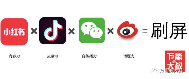 從“平臺”視角,小紅書(或b站)提供內(nèi)容力,抖音是流量池,微博是話題力,微信是自傳播力,5個平臺的“共振”,成就了每一次刷屏事件,尤其是負(fù)面刷屏事件。